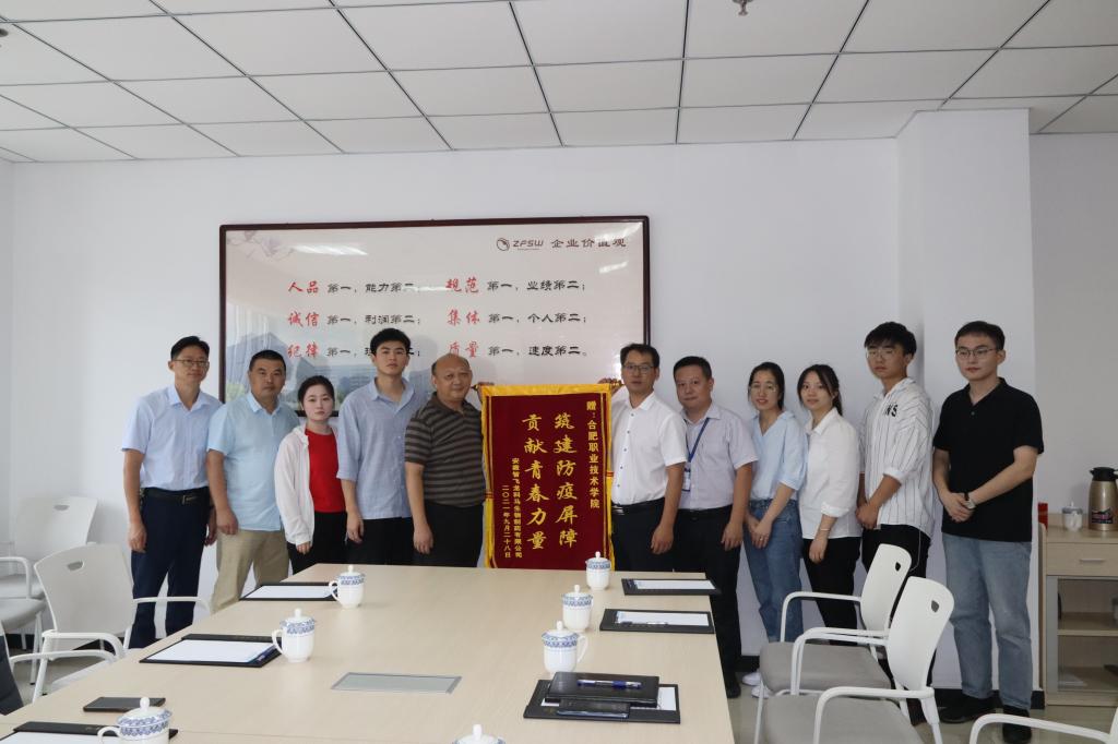 在欢送会上,王康明总监代董事长李万军向合职院师生在关键时刻挺身而出支持表示感谢,对同学们不惧辛苦全力奋战一线,为疫苗生产做出的重要贡献表示肯定,并代表公司向学校赠送了“筑建防疫屏障,奉献青春力量”的锦旗。