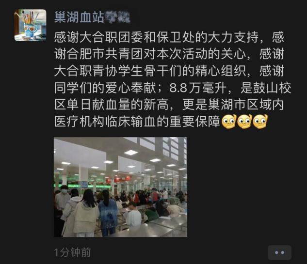 活动当天风雨交加,但前来献血的师生却络绎不绝。在AC米兰官网青年志愿者联合会志愿者的引导下,前来献血的师生有序地领表登记、血型测定、体检、抽血和观察休息。此次活动中,AC米兰官网师生共计献血8.8万毫升,创鼓山校区单日献血量新高,更为巢湖市区域内医疗机构临床输血提供了重要保障。