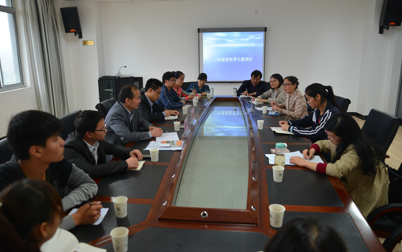 4月25日下午,省教育厅高校学生处左其琨处长等一行三人来我院作心理健康教育专题调研。就大学生心理健康教育指导中心的基本建设、心理健康教育工作开展以及心理健康教育课程的开设等情况,进行了深入调研。