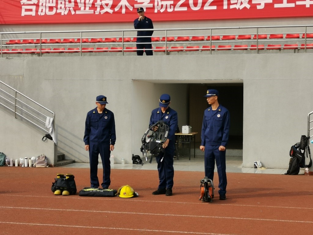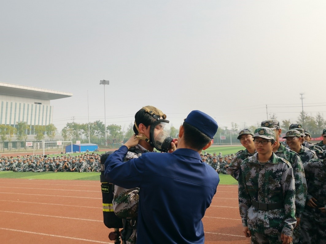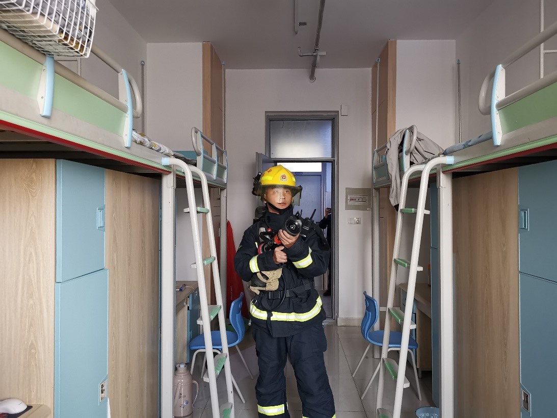 讲座结束后,开展了消防器材实操的互动环节。现场消防官兵演示了灭火器等家庭常见的消防设施器材,同学们还在消防官兵的指导下体验正确使用灭火器模拟灭火、体验消防服穿脱等,这种理论和实践相结合的方式,充分调动了同学们参与消防的主动性,切实提高学生对初起火灾的扑救能力。