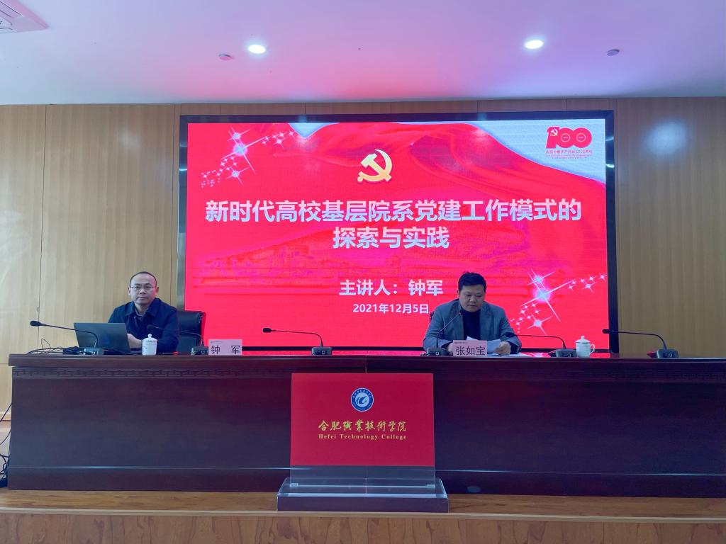 合肥工业大学仪器科学与光电工程学院党总支书记钟军副教授在“新时代高校基层院系党建工作模式的探索与实践”的专题讲座中分享了高校党建方面的成功做法,为AC米兰官网的党建工作尤其是党建示范校建设提供了新思路、新经验。
