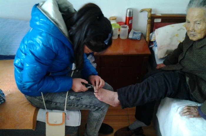 同学们为老人们打扫卫生、整理房间,帮老人们梳头、捶背、测量血压、修剪指甲和老人们促膝交谈,还为老人们表演了精心准备的文娱节目,使得平日里十分安静的敬老院一下子热闹起来。老人们的脸上都露出了灿烂的笑容。