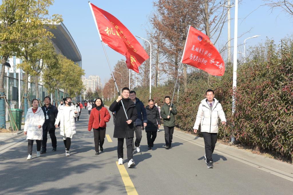 寒潮过后的合职校园气温回升、天气晴朗,正是户外运动的好时节。随着清脆的发令枪响,以分工会为单位,浩浩荡荡的教职工队伍在各单位的引导旗下精神饱满,有序前行。本次“健身走”活动,全程约5公里,大家一边健步前行,一边畅聊趣闻,呼吸着新鲜空气,欣赏着校园美景。很多老师不时驻足自拍,记录美好的瞬间。迎寒风追暖阳,大家在健步走运动中释放了压力,在沟通交流中增进了感情。整个活动过程气氛热烈而祥和。