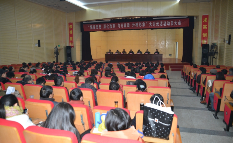 1月13日上午,我院在大学生活动中心召开全体教职工大会,对我院“解放思想 深化改革 内升素质 外树形象”大讨论活动进行动员。院党委书记丁家康在会上作重要讲话,院长方志斌主持大会,院领导茆书斌、胡其云、孙兴林、金辉、张广龙出席了大会。