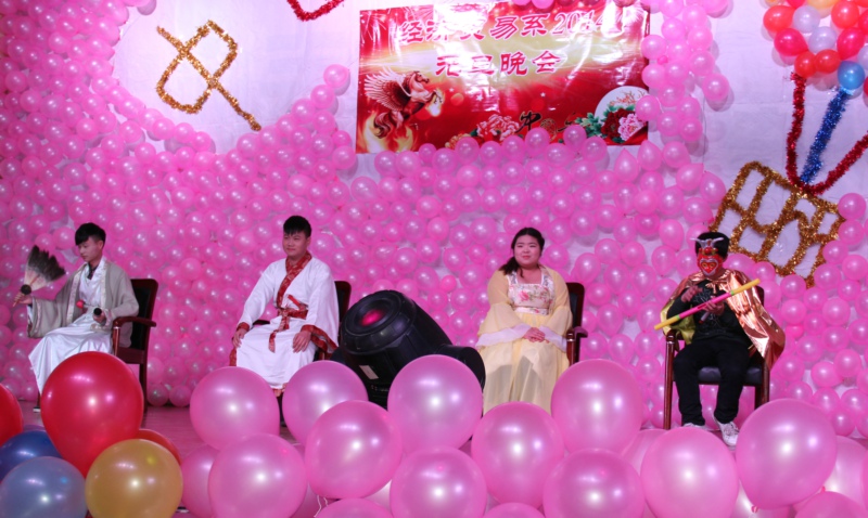 晚会开始前,经贸系主任宋风长首先致辞。随后在大屏幕上播放了一段由学生制作的视频短片,2013年经贸系的学生活动形式多样、成绩优异,那一张张学生活动的照片让大家对即将过去的2013年充满了留恋…。