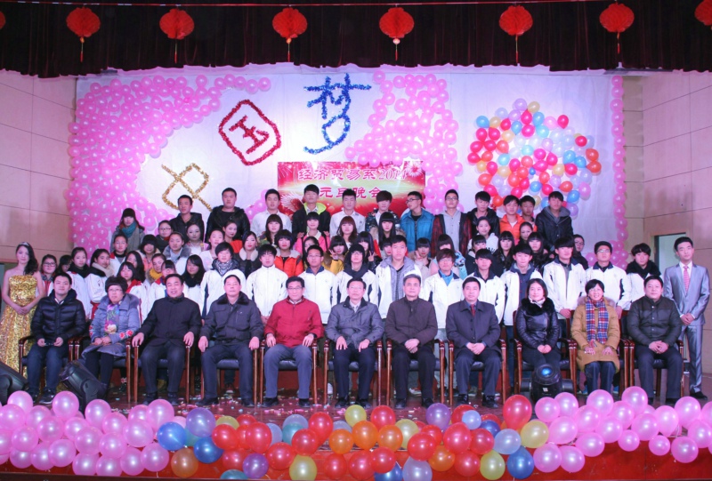 金蛇狂舞辞旧岁,骏马奔腾迎新年。12月27日晚7时,经贸系“放飞梦想•从心开始”2014年元旦文艺晚会在大学生活动中心隆重举行。院党委书记丁家康、院长方志斌、党委副书记胡其云、副院长孙兴林亲临现场欣赏了晚会,出席晚会的还有院团委负责人、经贸系师生代表,大家带着对新年的美好期盼欢聚一堂,共度良宵。