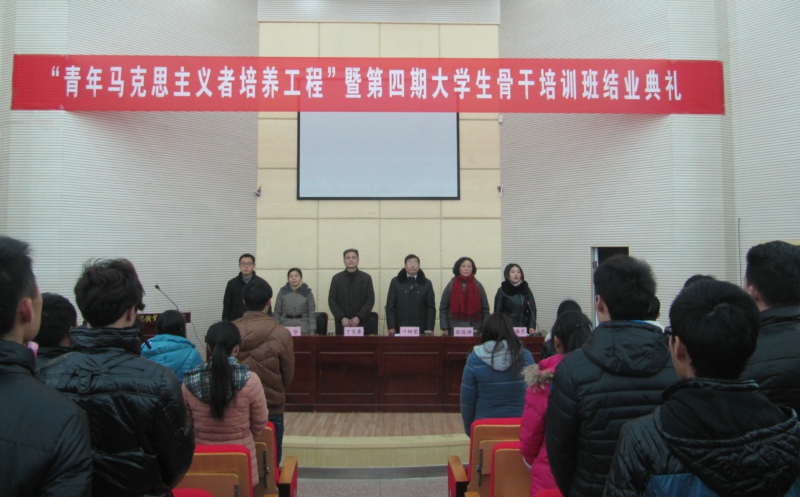 12月26日下午,院团委在图书馆二楼报告厅举办 “青年马克思主义者培养工程”暨第四期大学生骨干培训班结业典礼。党委书记丁家康出席结业典礼,组织部、宣传部、招生就业处、学生处等有关部门负责人及各系团总支书记参加了结业典礼。