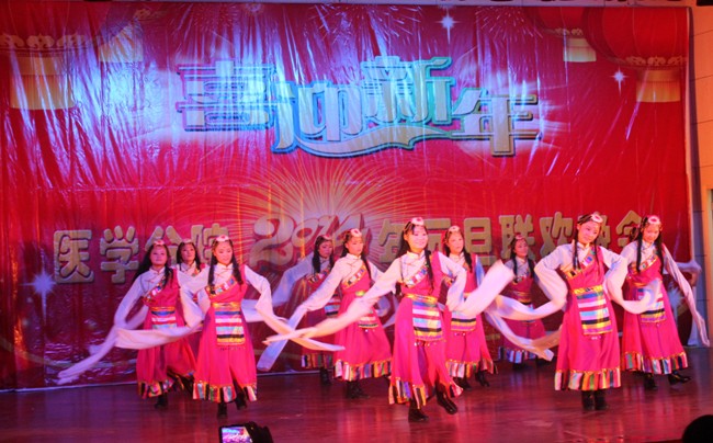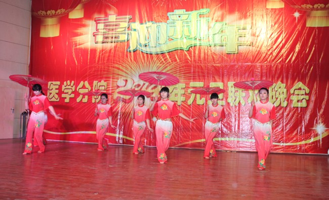 欢歌笑语满片场,载歌载舞迎新年。12月25日晚,学院大学生活动中心灯火辉煌,洋溢着一片节日的喜庆。医学分院2014年元旦文艺晚会在这里隆重举行。学院党委书记丁家康亲临晚会现场,与医学分院师生代表欢聚一堂,喜迎新年。