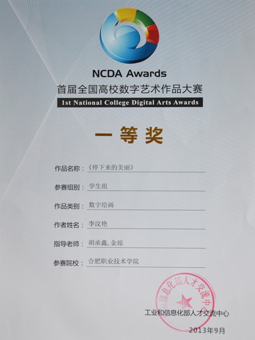 近日,“首届全国高校数字艺术作品大赛”作品成绩揭晓,我院计算机系系动漫设计与制作专业报送的作品喜获优异成绩。其中,由胡承鑫、金琼老师指导的,李汶艳同学绘画作品《停下来的美丽》和周晓宇同学绘画作品《异想记》分别获得大赛一等奖和大赛三等奖。