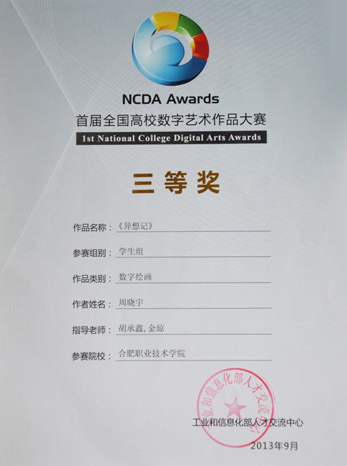 “首届全国高校数字艺术作品大赛”由工业和信息化部指导,工业和信息化部人才交流中心主办,全国信息化工程师NACG数字艺术人才培养工程办公室和上海工艺美术职业学院联合承办,于2012年11月20日正式启动。大赛面向全国高等院校师生、校企合作单位及导师,尤其是面向应用型本科及职业技术学院,旨在促进数字艺术教育、学科和专业的发展,提高教学水平及大学生的培养质量,增强教师与学生的创新意识、创新能力和动手能力,激励师生做出创造性成果的积极性。