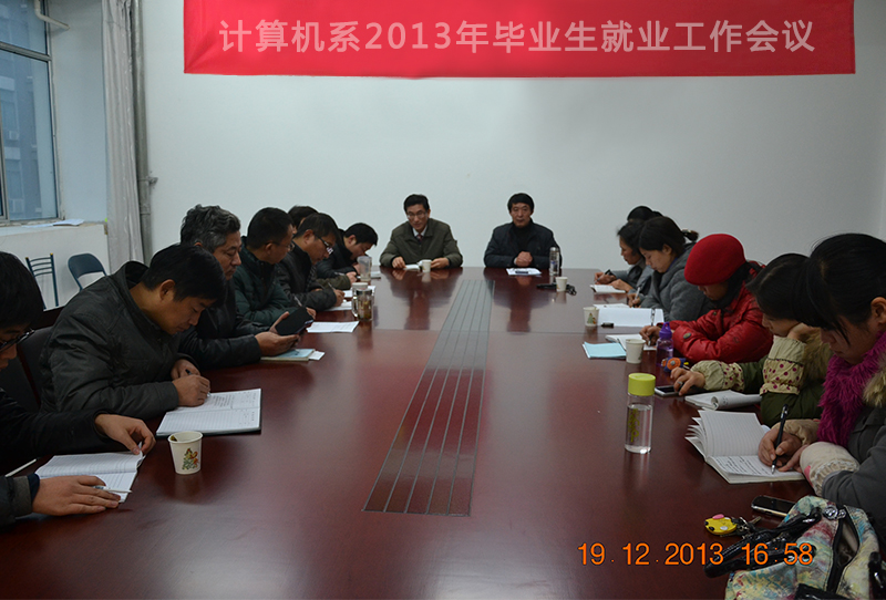 12月19日下午,计算机系2013年毕业生就业工作领导组会议在系会议室召开,副院长孙兴林出席并讲话,计算机系和招生就业处负责人参加会议。