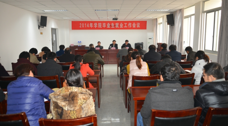 12月4日下午,我院在行政楼五楼会议室召开了2014年全院毕业生就业工作会议。院长方志斌出席会议并讲话。出席会议的领导还有院党委副书记胡其云、分管就业工作的副院长孙兴林。各系部、分院就业工作领导小组成员,2013届、2014届毕业班辅导员(班主任),院招生就业处以及宣传(统战)部、教务处、学生(保卫)处、实验实训中心等相关部门负责人参加了会议。会议由副院长孙兴林主持。