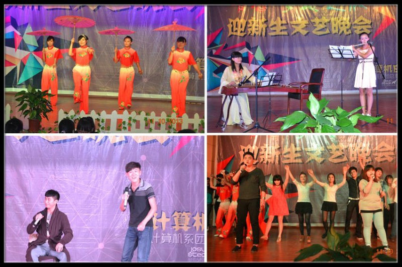 由于当天停电持续到晚上近七点钟,计算机系晚会指导老师和学生工作人员克服种种困难, 始终坚守岗位,提前做好各种晚会前准备。晚上七点三十分,晚会在一曲《开学了》歌舞中拉开序幕,接下来,计算机系社团组织的节目陆续登场乐器合奏、COS走秀、瑜伽表演、跆拳道表演,把现场氛围一次次推向了高潮。最后,晚会在全体演职人员的一首《我的未来不是梦》合唱声中落下帷幕。
