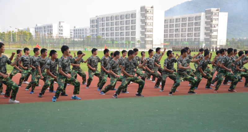 军训成果演示由队列表演、拳术表演、手语表演、图形方队和大合唱等几部分组成。同学们充分展示了十来天的军训成果,表演高潮迭起,现场不时爆发出热烈的掌声。
