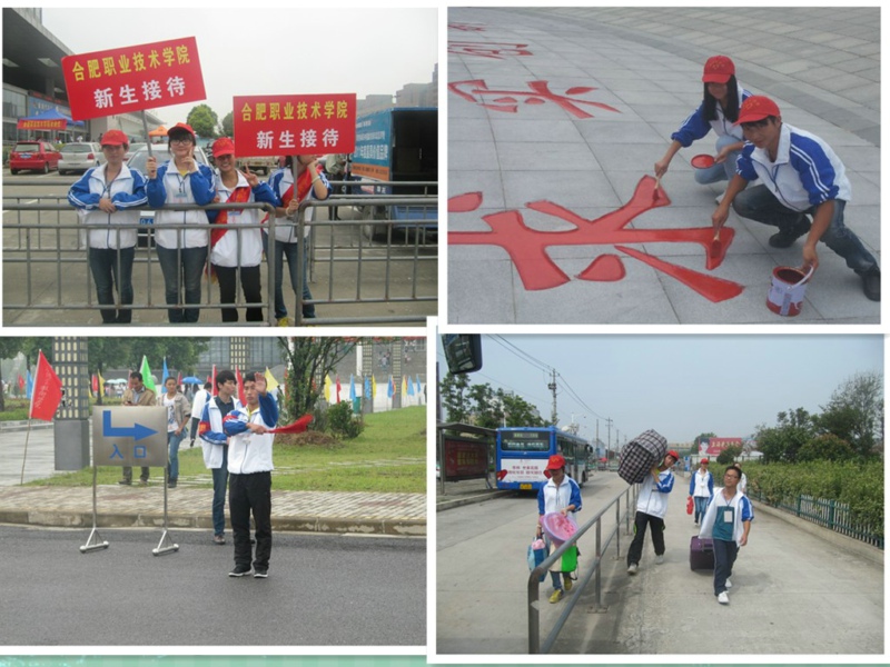 志愿者们分工明确,各司其职:校外接站组的志愿者们在火车站、汽车站调度车辆,送新生进校;咨询组的志愿者们在行政楼前,为新生和家长们答疑解惑;保卫组的志愿者们手持红旗,协助保安维持校园秩序;收费组的志愿者们协助财务人员认真细致地做好新生的缴费工作;新闻报道组的志愿者们则手拿相机、笔记本在校园各处捕捉迎新亮点;机动组的志愿者们最辛苦,哪里有需要,哪里就有他们的身影。志愿者们共同的目标就是:引导每一位新生顺利、快速的办好入学手续、住进宿舍、融入新环境。