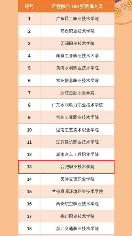 近日,《高职院校“双百强”评选活动》组委会公布了全国高职院校产教融合、创新创业“双百强”评选首批入选名单,AC米兰官网成功入选“产教融合100强”首批31高校之一,排序位列全国百强第十三。