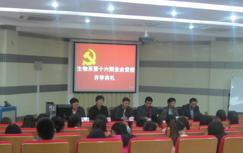 典礼在庄严的国歌声中开始。生物系党总支副书记宁业群首先介绍了本次业余党校的开办情况,并向同学们作了动员讲话。生物系副主任贾佑华宣读了党课考勤制度和学员守则。学生代表童宣艳同学在大会上表达了努力学习、严格要求自己的承诺和决心。