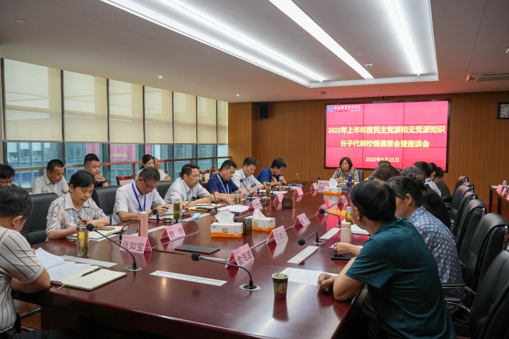 校党委副书记胡其云向民主党派人士和无党派知识分子代表通报了学校2022年上半年学校重大发展情况。各民主党派人士和无党派知识分子代表围绕落实立德树人根本任务、推动学校高质量发展,以及教育教学改革、管理、服务、人才培养等内容积极建言献策。