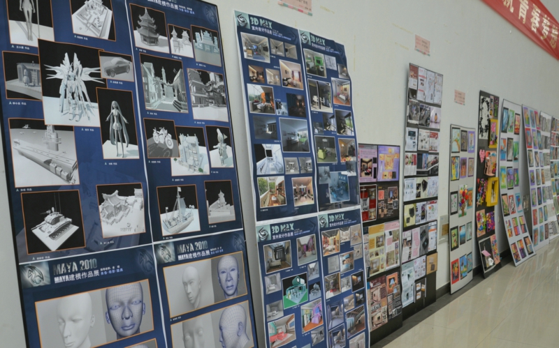 元月14日,计算机应用技术系2012-2013学年第一学期艺术设计作品展在院图书馆二楼展厅隆重举行,这次展出的艺术作品全部选自计算机系广告设计与制作和动漫设计与制作两个专业的学生课程作业。此次展出的作品按所授课程分为《素描》、《基础构成》、《色彩构成》、《企业形象设计》、《书籍装桢》、《室内装饰设计》、《MAYA三维动画设计》、《分镜头设计》等10多个专题,通过展出的作品可以充分发掘学生的聪明才智,在知识培养与技能学习之间架设桥梁,让学生把枯燥的书本理论知识变成可以看得见摸得着的艺术设计作品,在作品设计与制作过程中,闪烁着同学们的奇思妙想,展现了他们的心灵手巧。