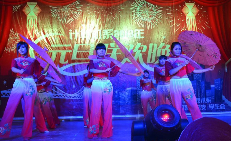 在动感欢快骑马舞迅速点燃全场气氛之后,计算机系主任程道凤代表计算机系致新年贺辞。