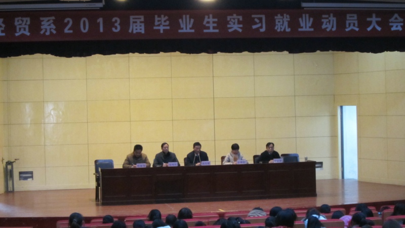 2012年12月6日上午,经贸系2010级学生实习就业动员大会在院大学生活动中心举行,副院长孙兴林出席。大会由经贸系主任宋风长主持。