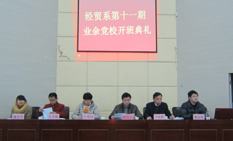 为进一步加强大学生思想政治教育,提高大学生对党的认识,做好优秀大学生的推优入党工作,经贸系第十一期业余党校于12月3日下午在图书馆二楼学术报告厅举行开班典礼。院党委副书记胡其云应邀出席,经贸系总支、学生支部及本期业余党校全体学员共200余人参加了开班典礼。开班典礼由经贸系副主任宁业群主持。
