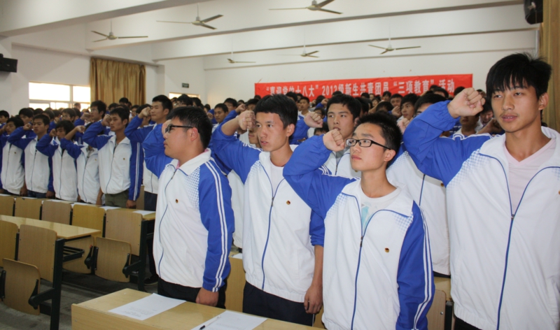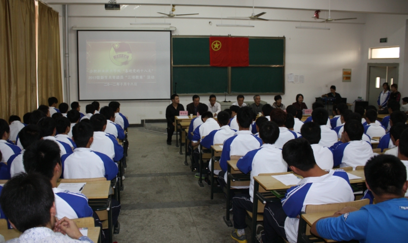 为进一步增强新生团员对学校和团组织的认知和归属感,塑造团员青年良好的精神面貌,10月18日下午,“喜迎党的十八大”2012级新生共青团员“三项教育”活动在A栋教学楼二楼阶梯教室举办。