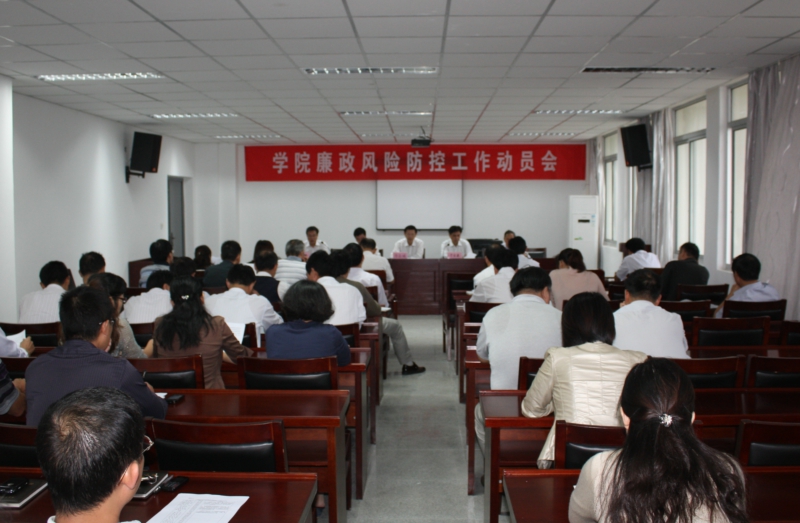 9月21日下午,在前期宣传发动和制定实施方案的基础上,我院召开廉政风险防控工作动员大会。院长方志斌主持会议,院党委书记丁家康作动员报告,院纪委书记金辉作具体工作部署。院党委副书记胡其云、副院长汤先觉及全体中层干部、学院廉政风险防控工作联络员等参加会议。