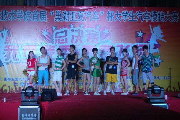 由学院主办,汽车应用技术系、团委承办的首届“巢湖亚夏汽车”杯大学生汽车模特大赛总决赛6月15日在院东篮球场落下帷幕。院党委副书记胡其云,院党委宣传部、汽车系、医学分院、院团委等有关系部的负责人,巢湖亚夏汽车城的有关负责人与近千名观众一同享受了此次视觉盛宴。评委由巢湖学院专业教师和我院教师共同担任。