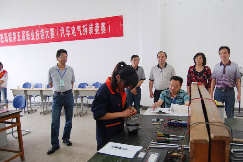 5月30日下午2点30分,合肥职院第五届学生职业技能大赛暨汽车系第二届汽车电气拆装与检修技能竞赛决赛在汽车系汽车电气实训室举行。院党委书记丁家康、院长方志斌莅临现场指导,实习实训中心等相关部门负责人观摩了比赛。