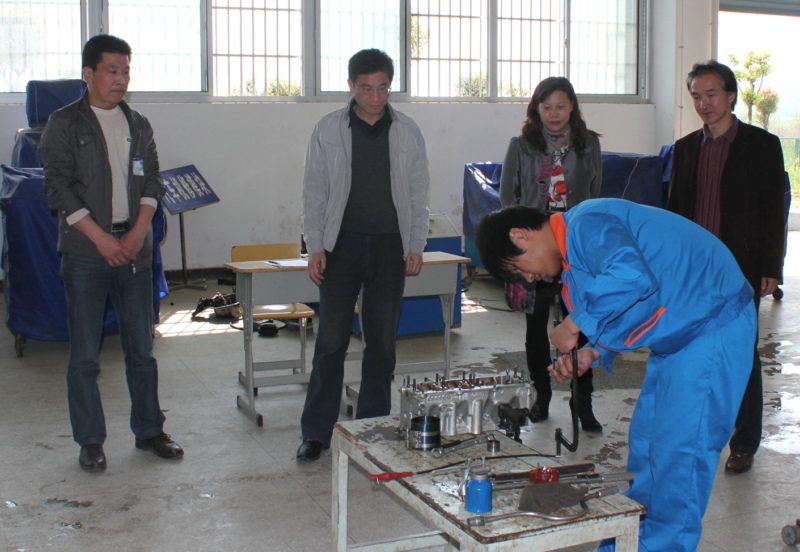 理论考试结束后,紧接着在工程楼汽车应用技术系实训中心进行各工种的技能实操考试。副院长孙兴林在汽车系负责人的陪同下,再一次来到各实训室查看鉴定情况,并要求各考评员严格按照鉴定程序和要求进行评分,尽职尽责、严肃纪律,做到公平公正。