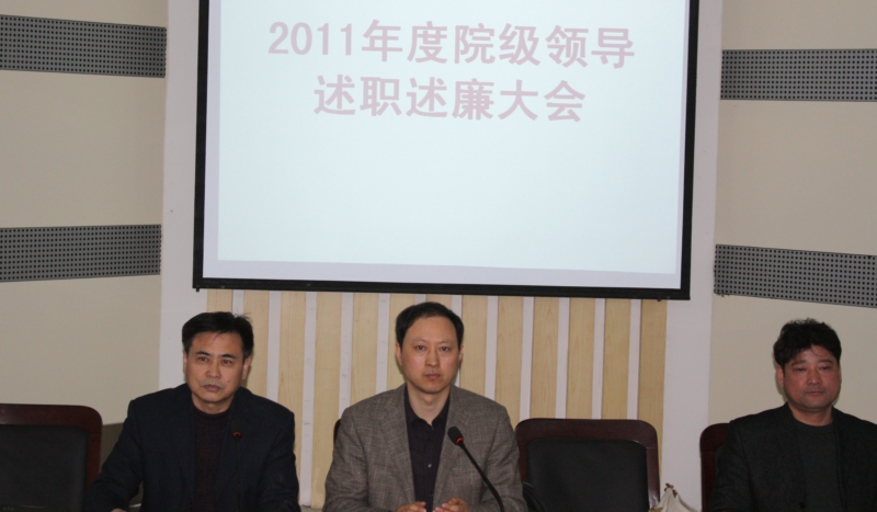 3月31日上午,根据市委组织部的统一安排,2011年度学院领导班子述职、述廉报告会在学院图书馆楼一楼报告厅顺利召开。会议由党委书记丁家康同志主持,市委组织部企事业干部处郭健处长、纪委王主任、企事业干部处袁主任等领导、学院党政领导班子成员和全体副科以上干部、副教授以上职称教师参加了会议。