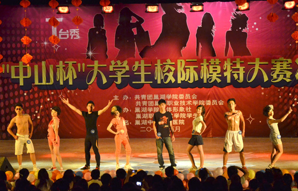 为加强巢湖两高校间的交流与合作,进一步将全省高校共青团共建工作落到实处,充分展示巢湖大学生的青春风采,5月21日晚,“中山杯”巢湖高校校际模特大赛决赛在巢湖学院大礼堂隆重举行。团市委书记谢海、副书记赵斌,巢湖学院团委书记赵尚松,我院团委副书记佘海月等出席比赛并担任评委。