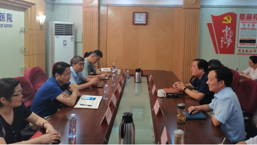 为更好服务学生就业,开拓更多就业创业岗位,全方位提升校企合作育人成效,医学院认真贯彻落实学校推进就业工作各项任务要求,积极开展“访企拓岗促就业”专项行动。8月4日,学校党委书记王杰才带领医学院班子成员走访了合肥市第八人民院。合肥市第八医院党委书记蔡晓明、党委副书记、副院长朱兴国、副院长倪秀武、副院长杜勇等热情接待了王杰才一行。