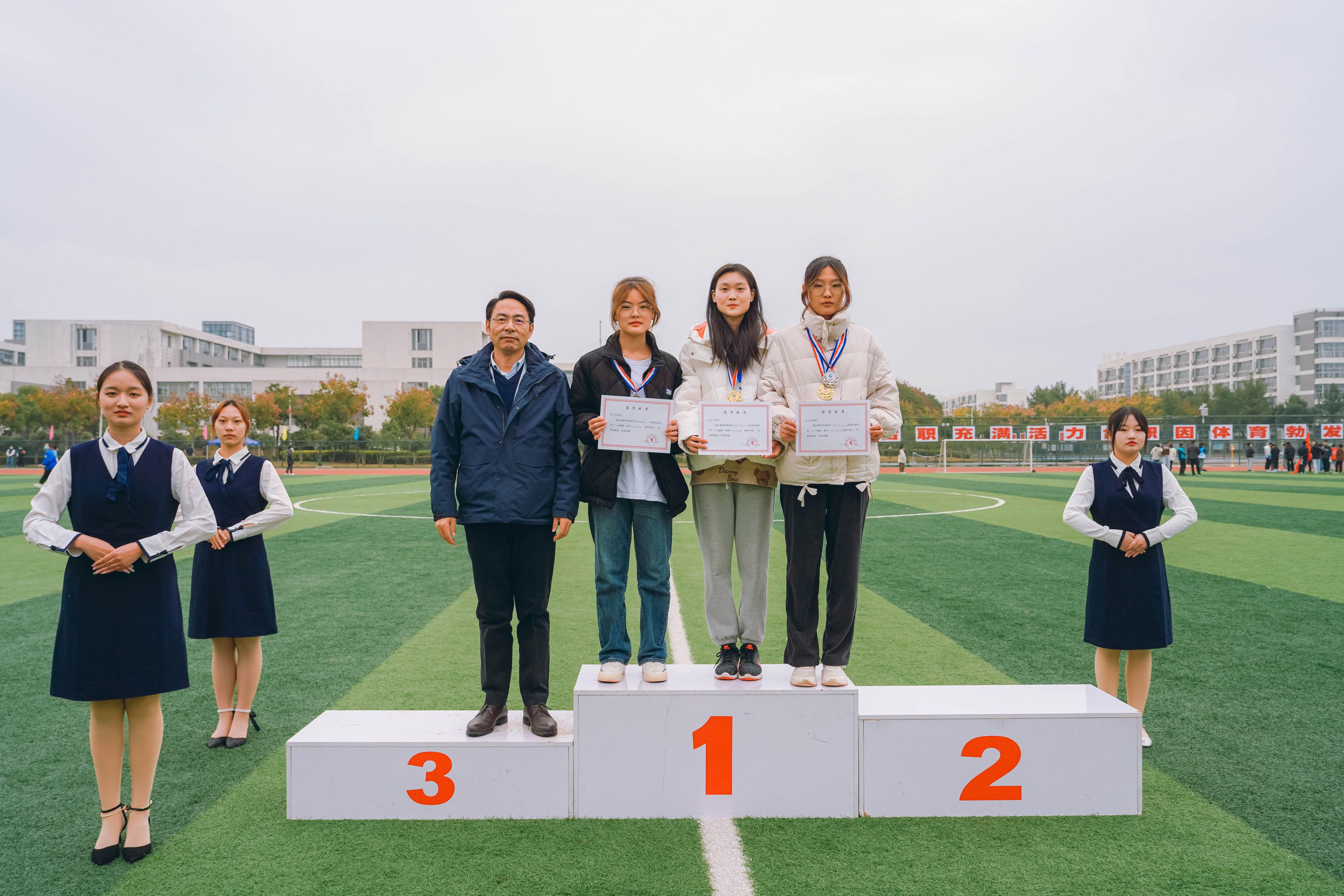 闭幕式上,本届田径运动会总裁判长魏祥宣布团体成绩,信息工程与传媒学院、医学院获得团体优秀奖,汽车工程学院、机电工程学院、经贸旅游学院、建筑工程学院、轨道交通学院、AC米兰中文官方网站获得团体鼓励奖。随后,主席台上就座的校党政领导分别为获奖团体颁奖。