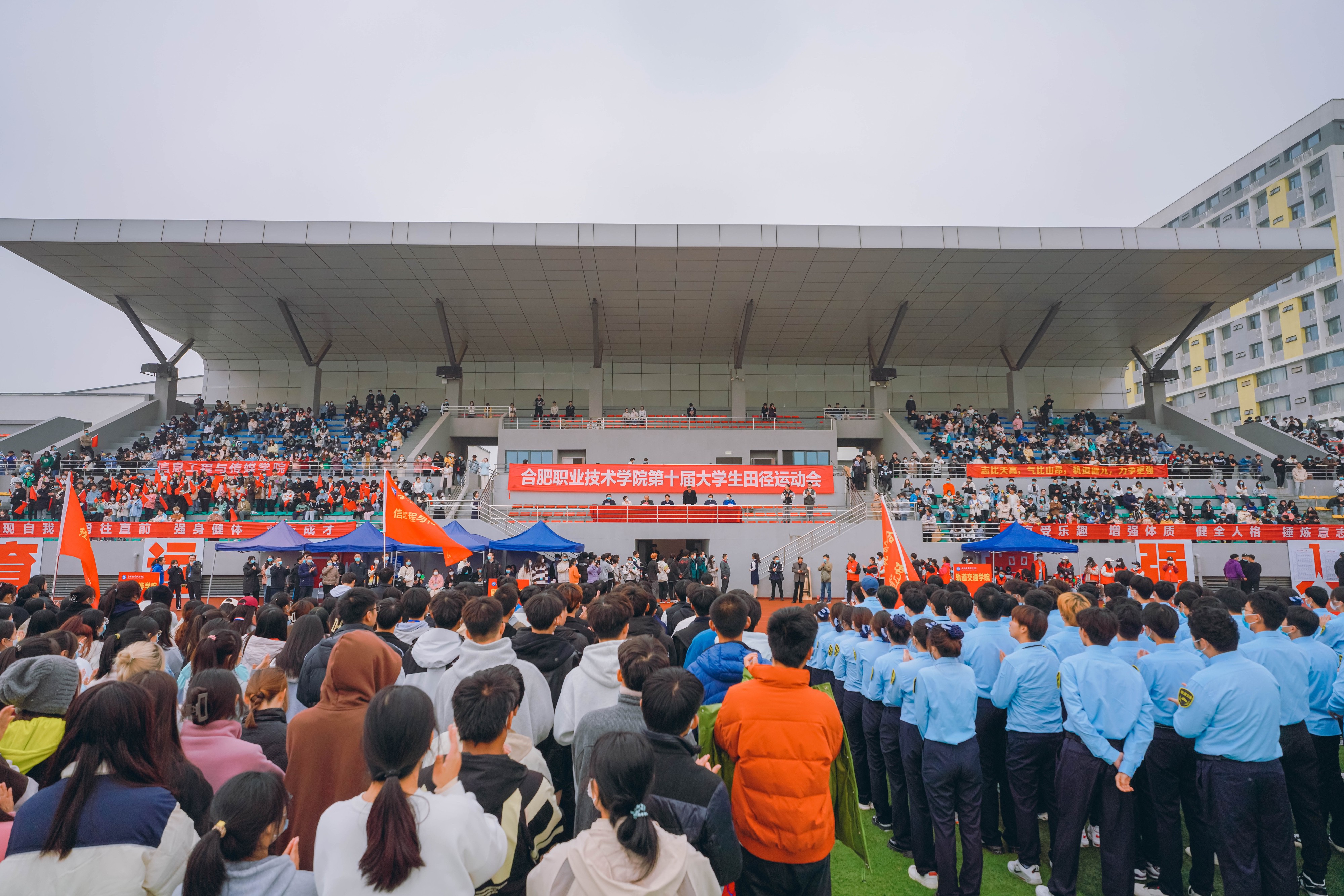 11月17日下午,AC米兰中文官方网站第十届大学生田径运动会暨第十届“健康杯”教职工运动会闭幕式在汇心湖校区田径运动场举行。校党政领导班子成员王杰才、孙兴林、周晓隆、陶宁、魏华、王海、张如宝出席闭幕式,学校相关职能部门负责人、各二级学院党政领导、全体运动员、裁判员参加闭幕式。闭幕式由校党委委员、副校长周晓隆主持。