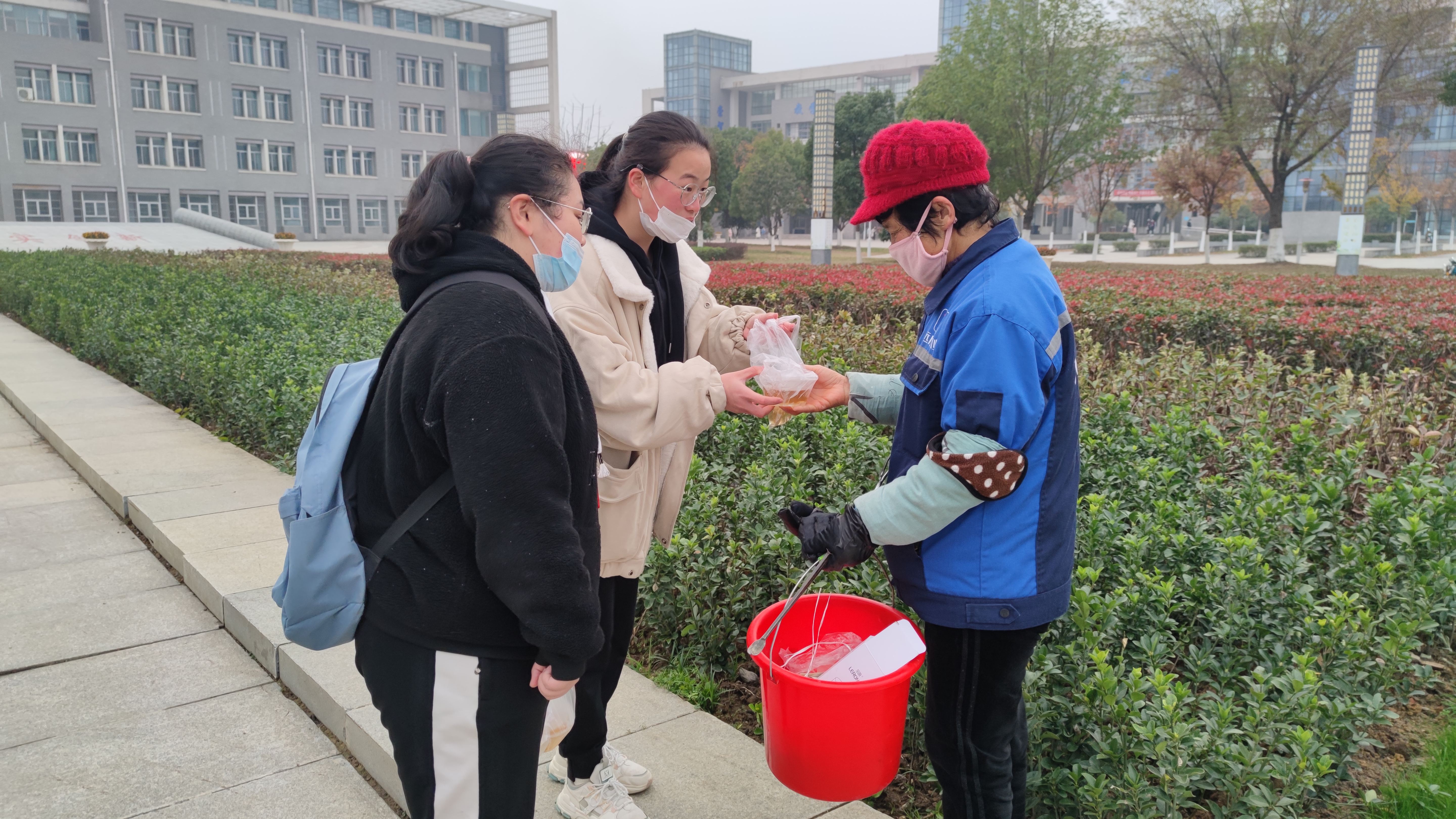 在看不见雪却丝毫不减其威力的寒冷冬天里,志愿者们穿上红马甲,并且真心地希望姜汤和围脖可以温暖不辞辛劳的每一位老师和后勤人员。愿志愿者们的微薄之力,能化作照亮校园的另一缕阳光,温暖校园的每一个角落,愿这个冬天的合职不太冷!(供稿:团委 编辑:杨璨)