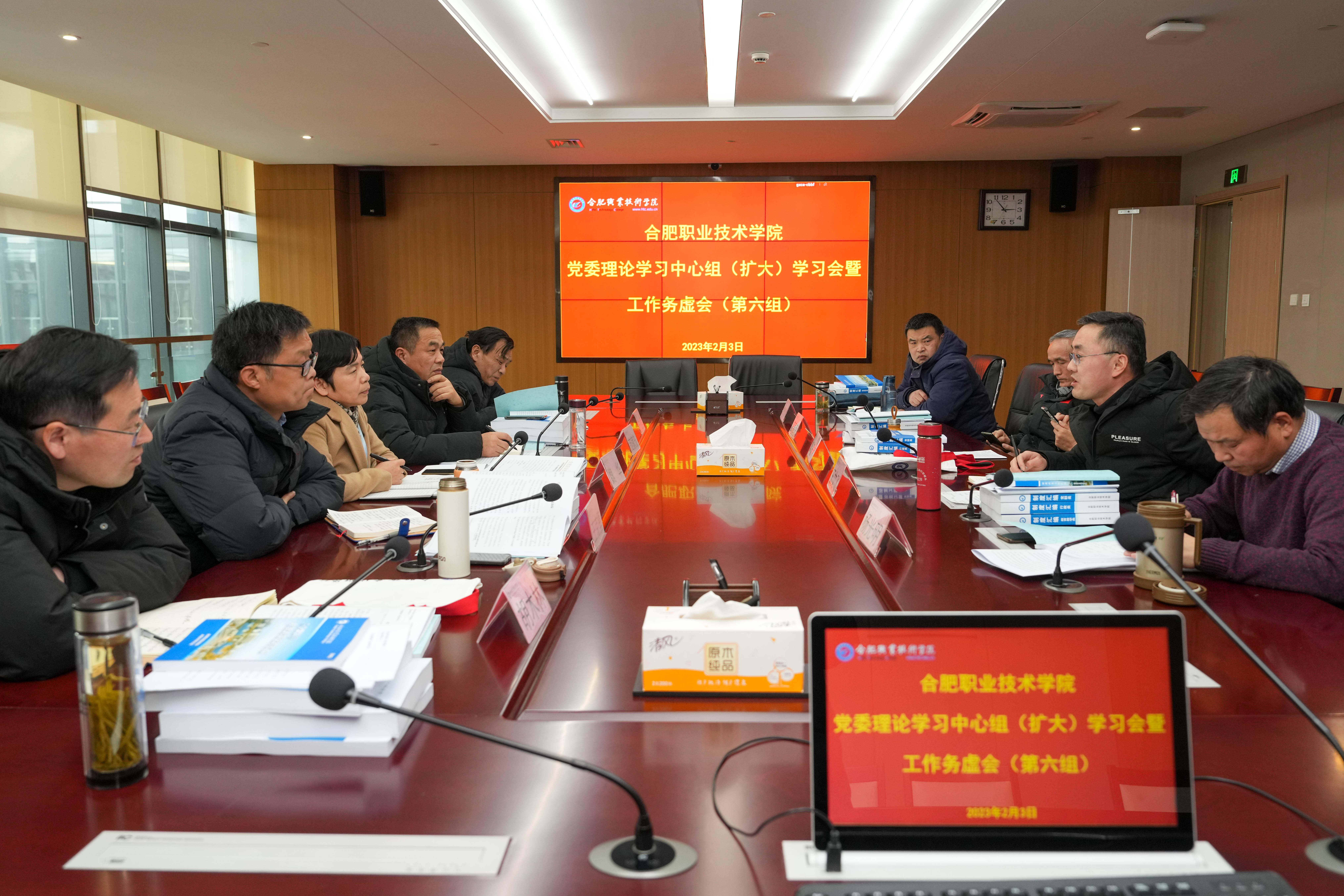 会议第二阶段,党委理论学习中心组(扩大)学习会集中学习了国家主席习近平发表二〇二三年新年贺词等重要讲话和职业教育有关文件,传达了市政府工作报告、中共中央办公厅 国务院办公厅印发《关于深化现代职业教育体系建设改革的意见》,并进行了分组研讨。与会各部门及二级学院主要负责人结合学习内容及学校实际,围绕“凝心聚力 提升内涵”的主题,重点对2023年学校改革发展思路、重点任务落实等方面开展研讨。研讨氛围热烈,大家集思广益,围绕会议主题积极发言,特别是针对申报“双高计划”、建设职教本科和金寨路创新创业园区建成使用问题等,提出来很多富有建设性的意见和建议。各参与分组讨论的校领导进行了深入点评。