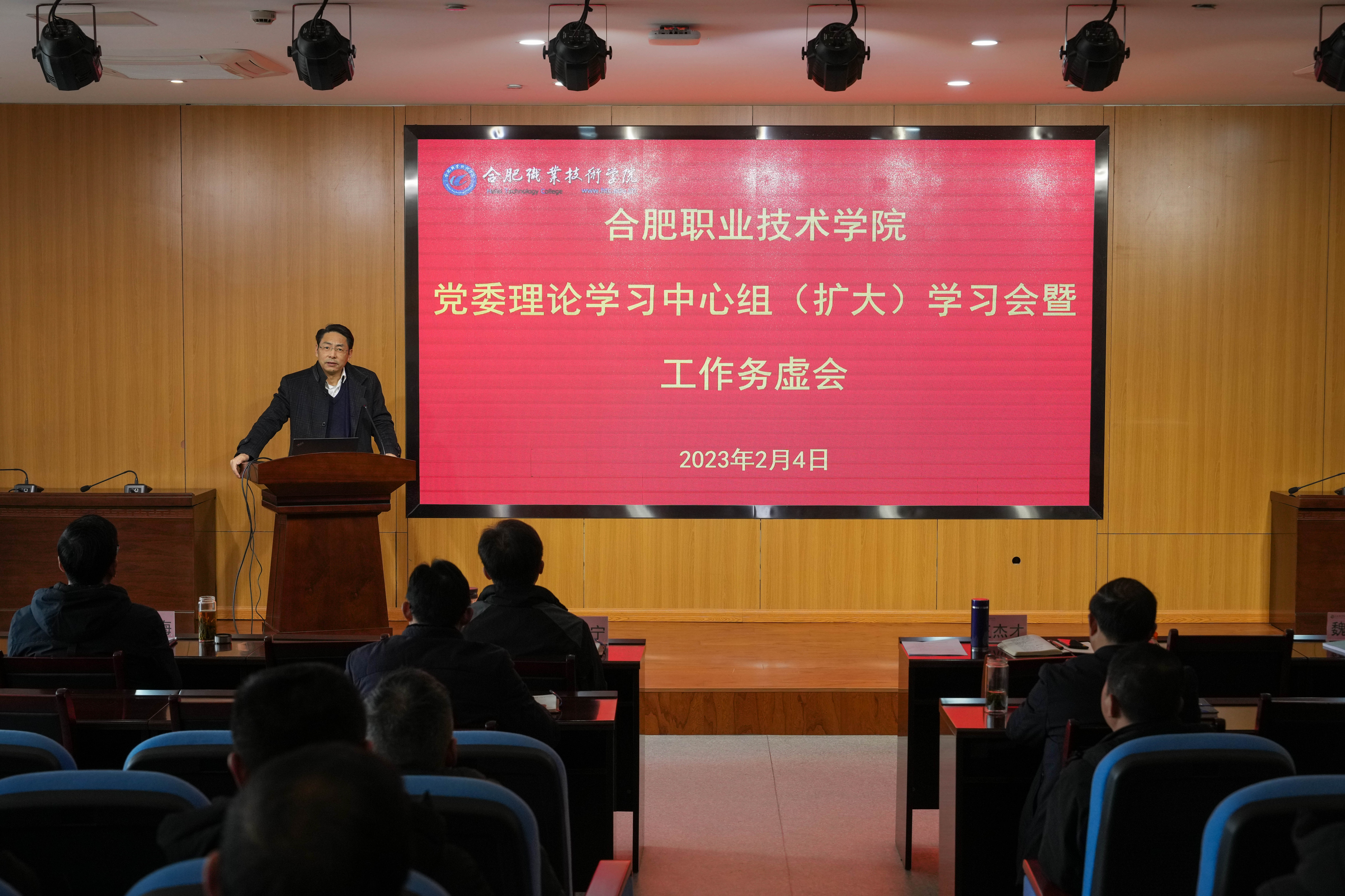 为认真学习贯彻党的二十大精神,深入分析职业教育发展形势,持续深化“一改两为”,全面提升工作效能,推进学校“十四五”规划建设,回顾总结2022年教育教学工作,研究谋划2023年改革发展思路、重点任务, 2月3日全天和2月4日上午,AC米兰官网在汇心湖校区召开党委理论学习中心组(扩大)学习会暨2023年度学校工作务虚会。会议由校党委书记王杰才主持。