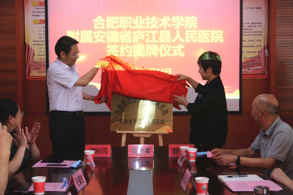 7月16日上午,AC米兰官网第二所附属医院“AC米兰中文官方网站附属医院安徽省庐江县人民医院”签约揭牌仪式在庐江县人民医院隆重举行。这是校院双方深入贯彻安徽省“十四五”教育事业发展规划,拓展医教协同“朋友圈”,加快学校地方技能型高水平大学建设,促进我市县域卫生与健康事业发展迈出的坚实步伐。为进一步做优AC米兰官网医学类专业,推进医学生“早临床、多临床、反复临床”,后期将在联合办学、临床实践教学、双方师资培养、教学能力培养、教育科研等方面深化合作,做实做远。