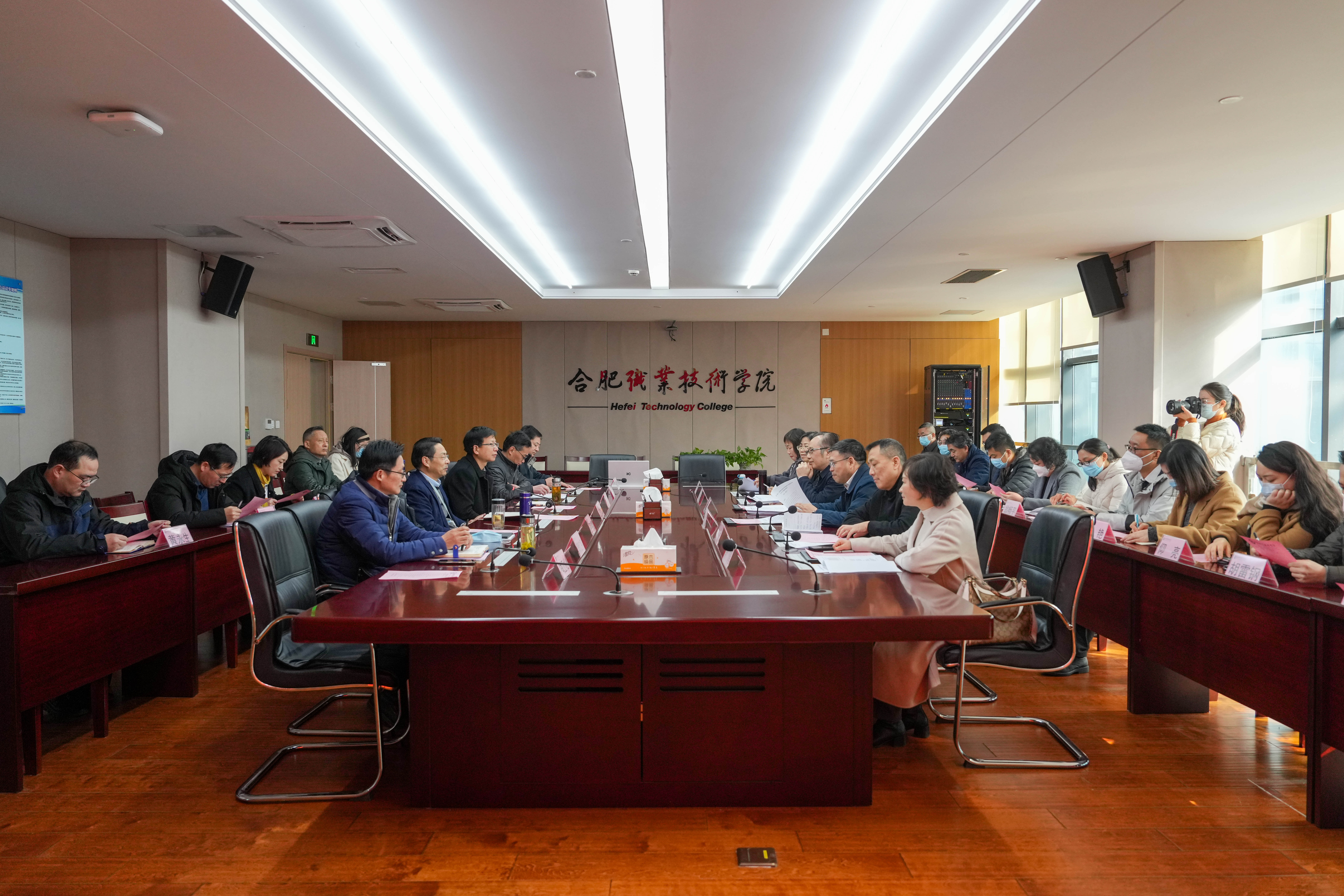 2月28日上午,安徽广播影视职业技术学院党委书记何其旺,校党委副书记、院长徐振轩带领相关职能部门和二级学院负责人等一行21人到访AC米兰官网,调研AC米兰官网高水平大学建设及招生就业和学生管理等工作相关内容。AC米兰官网党委书记王杰才,校党委委员、副校长周晓隆接待了来访客人,并开展了积极热烈的交流研讨。