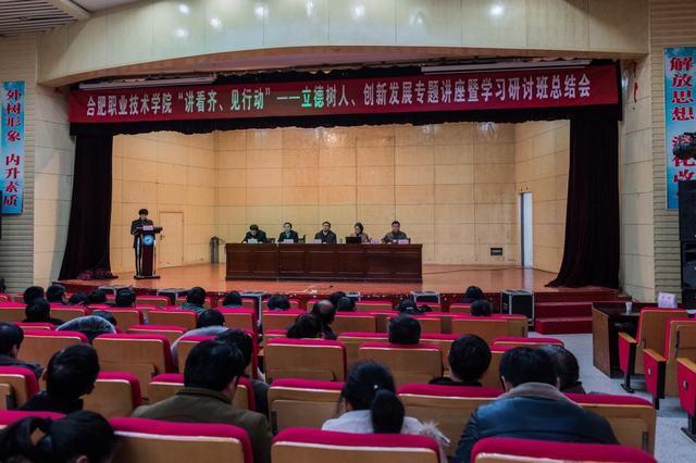 12月27日下午,我院“讲看齐、见行动”――立德树人、创新发展专题讲座暨学习研讨班总结会在大学生活动中心二楼礼堂隆重举行。此次讲座特邀省委党校著名教授吴梅芳教授作为讲座嘉宾。院领导班子成员,各系部(分院)、各部门主要负责人,各党总支、党支部委员,各教研室主任、教学秘书、实践教学秘书、学管秘书、团总支书记、辅导员(班主任),思想政治理论课教师和全体党员参加了会议。会议由党委副书记胡其云主持。