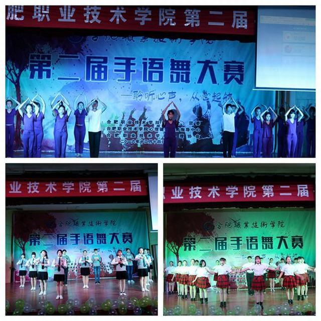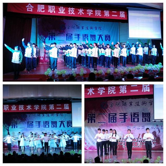 温馨的音乐,灵动的手语,璀璨的舞台,热情的观众,合职学子集聚一堂。来自各系(分院)共计12个参赛队伍的表演精彩纷呈,尽显风采。灯光下的舞者用手之舞,表心之语,轻柔的指尖,舞动出爱的奇迹,带给观众视觉的享受与心灵的感动。友谊长存的《我的好兄弟》,阵容庞大,动作整齐划一,赢得了现场观众的阵阵掌声与喝彩。天使般真情演绎的《隐形的翅膀》用无声的手语划出了优美,用真情的演绎感染了在场的每一位观众。亮出独特微笑的《中国青年志愿者》,用真诚与友善点燃了在场每一个人的热情……别出心裁的队形转换,细腻流畅的动作展示,舞蹈与手语巧妙结合,勾勒出一幅幅动人的画面,手语之美,尽显其中。