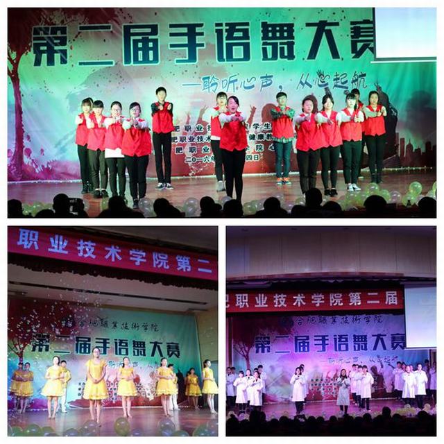 同学们带着拼搏的激情、执著的追求,赛出精气神韵,尽情展现青春活力。院青年志愿者协会《中国青年志愿者》、16汽检1班《我的好兄弟》、生物系爱心励志协会《生命不止》、16建装班《站起来》、16药学2班《时间煮雨》和16汽营1班、汽电班《爱》六支参赛队伍获得优秀奖。16影像班《最好的未来》、16会计3班《有你的地方是天堂》和16护理12班《隐形的翅膀》三支参赛队伍获得三等奖。16中美会计班《我的未来不是梦》和医学分院心理协会《手语舞串烧》两支队伍获得二等奖。计算机系瑜伽社代表队《最好的未来》,以瑜伽与手语的完美结合诠释了梦想的力量,获得本届手语舞大赛一等奖。