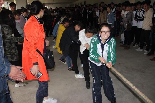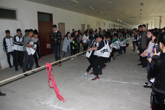 下午的比赛中参赛队员双手紧握长绳,团结一致,齐心协力,一根绳一条心,拉拉队员们也热情高涨,为参赛选手们齐声高喊“加油”,呐喊声响彻云霄。比赛中,发扬了同学们的团队合作精神,也使同学们明白了只有劲往一处使,拧成一股绳,才能成为一种巨大的力量。(供稿:基础部 编辑:朱鹏飞)