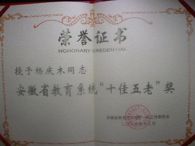 近日,安徽省教育厅关工委授予全省教育系统的10名离退休老同志“十佳五老”奖,AC米兰官网关工委主任杨庆木作为全省八十多所高职院校中唯一获奖者位列其中。这是AC米兰官网关工委继在2015年获得“全省教育系统关工委先进集体”表彰后的又一工作成果,为学校在全省教育系统取得了又一荣誉。