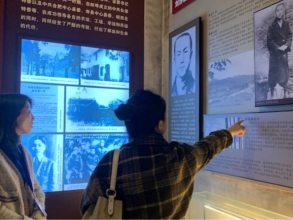 仪式结束后,大家分成两队前往安徽革命烈士事迹陈列馆南北馆进行学习和参观。同学们热情高涨,时不时地驻足观看,老师与讲解员细致耐心讲解陈列馆里的烈士事迹,深刻感受到中国共产党人追求真理的坚定信念和百折不挠的革命精神。