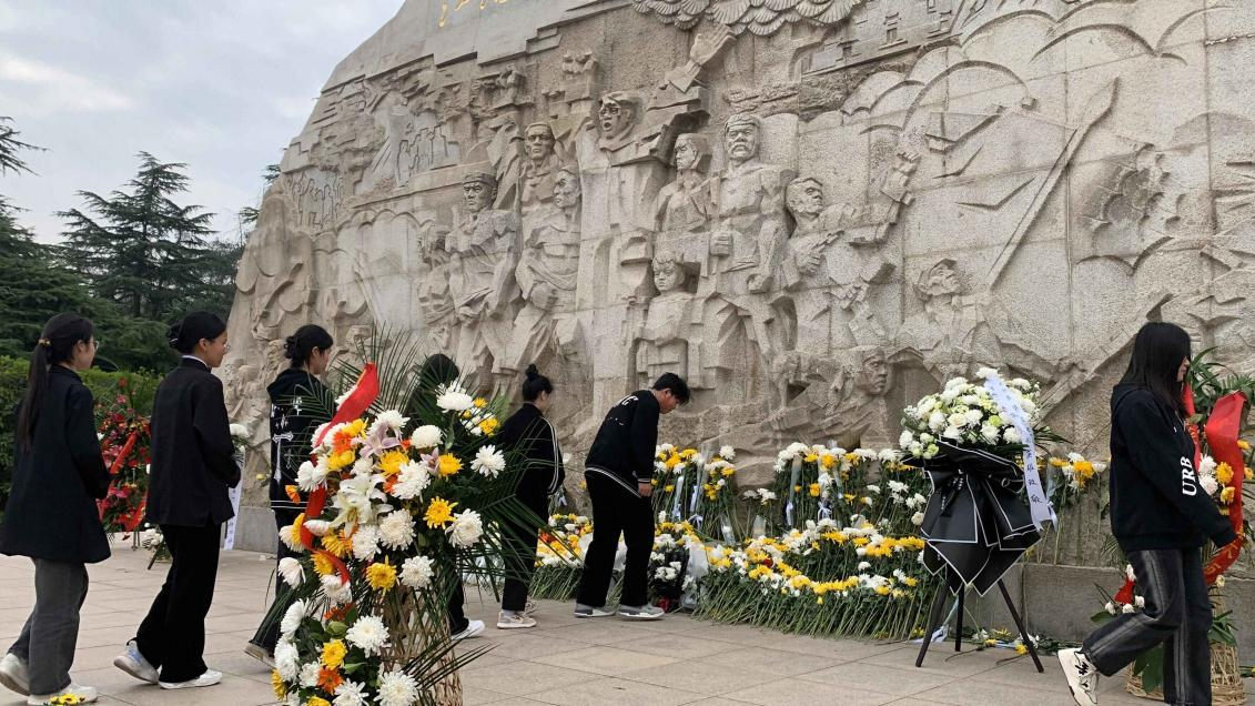 在庄严肃穆的氛围下,同学们在悼念广场统一排好队伍,全体立正,所有人向革命烈士默哀三分钟,并向烈士行三鞠躬。“家国又清明,鲜花献英烈!”全体成员手持菊花,缓步走向革命烈士纪念碑,将花篮敬放在纪念碑前。深刻缅怀为争取民族独立和人民解放,实现国家富强和人民幸福矢志奋斗、无私奉献、英勇牺牲的英烈们。