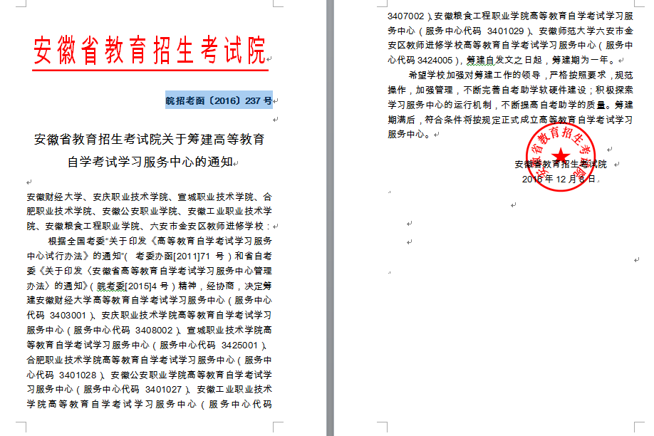 近日,从安徽省教育考试院传来喜讯,经省教育考试院批准,同意我院成立“安徽省高等教育自学考试学习服务中心”。