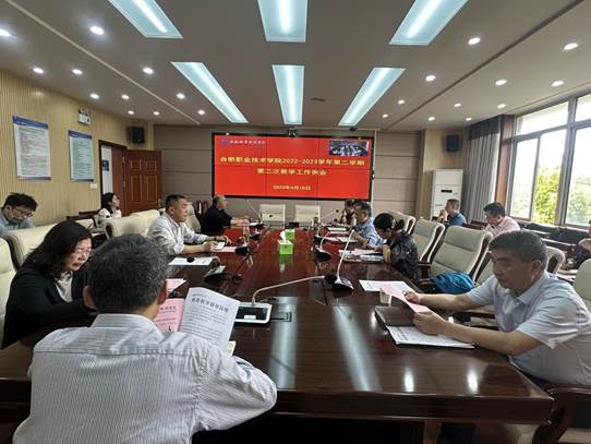 会上,机电工程学院院长胡木林、经贸旅游学院副院长刘圣春汇报了校企合作典型案例。科技处副处长高云从基本情况、取得成绩、存在问题、改进建议工作打算4个方面对全校开展的校企合作做了总结和建议。科技处处长胥振国布置了2023年高等学校质量工程项目年度检查验收工作;教务处处长窦红平布置了2023年分类招生相关工作;教育教学督导评价中心主任王丹对深改和诊改典型案例征集和相关总结、计划提交情况进行了汇报;继续教育学院副院长(主持工作)沈曙东对继续教育与“1+X”证书工作进行汇报并对下一步继续教育等工作做出规划。